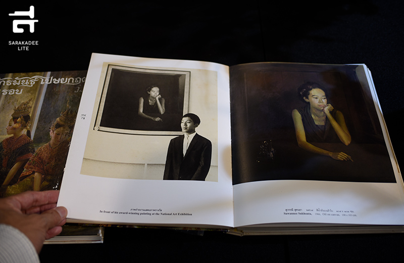 ผู้ชมจะได้เห็นตั้งแต่ภาพสเกตช์บนกระดาษในปี 2493 สมัยเรียนที่โรงเรียนวชิราวุธวิทยาลัย ภาพสเกตช์รูปเหมือนตนเองในปี 2507 ภาพสีน้ำมันบนผ้าใบในปี 2509 ขณะเป็นนักศึกษาที่คณะจิตรกรรมฯ มหาวิทยาลัยศิลปากร ภาพเหมือนหรือพอร์เทรตบุคคลต่างๆ ด้วยบรรยากาศและแสงเงาอันเป็นเอกลักษณ์ ภาพพระบรมสาทิสลักษณ์ของรัชกาลที่ 9 และพระบรมราชชนนีพันปีหลวง ในปี 2549 ซึ่งต่อมาได้นำไปเป็นต้นแบบเพื่อขยายเป็นภาพขนาดใหญ่ประดับพระที่นั่งบรมราชสถิตยมโหฬารในพระบรมมหาราชวัง และภาพชิ้นเอกอย่าง “พระลอเสี่ยงน้ำ” และ “พระสุพรรณกัลยาไปพม่า” ในปี 2551 รวมถึงภาพประกอบหนังสือเรื่องพายุพิโรธ (The Tempest) และแมคเบธ (Macbeth) ของ วิลเลียม เชกสเปียร์ แปลโดย นพมาส แววหงส์ ในปี 2554