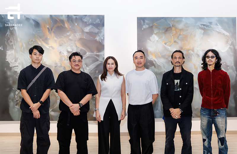 (กลาง) ธณพร ตันติยานนท์ ผู้บริหารสยามพารากอน ถ่ายภาพร่วมกับ All About Art Gallery จากประเทศสิงคโปร์และศิลปิน